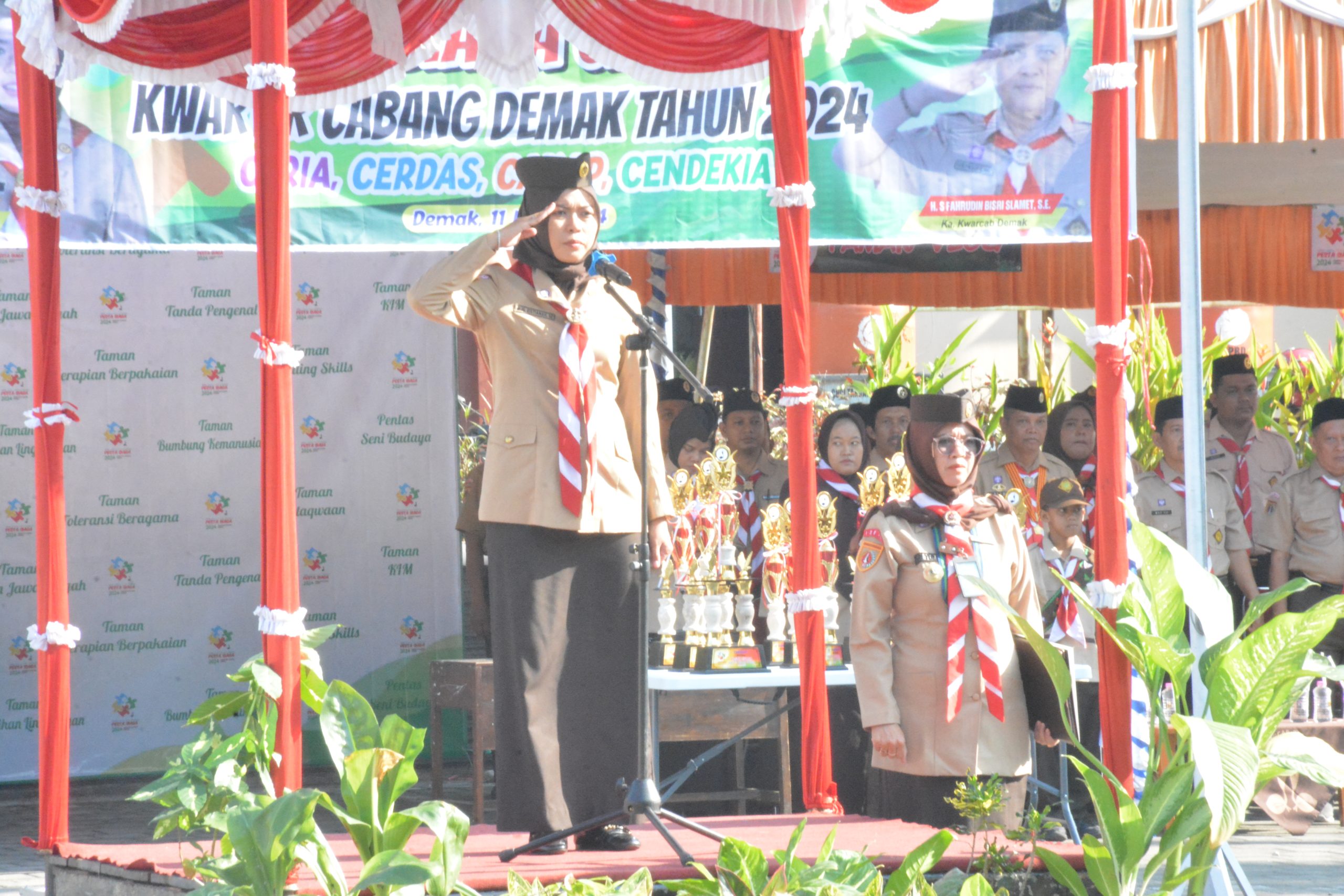 Bupati Demak, Eistianah pimpin Upacara Pesta Siaga Cabang, Kabupaten Demak, di Sanggar Bhakti Pramuka Kwarcab, Sabtu (11/05/2024).