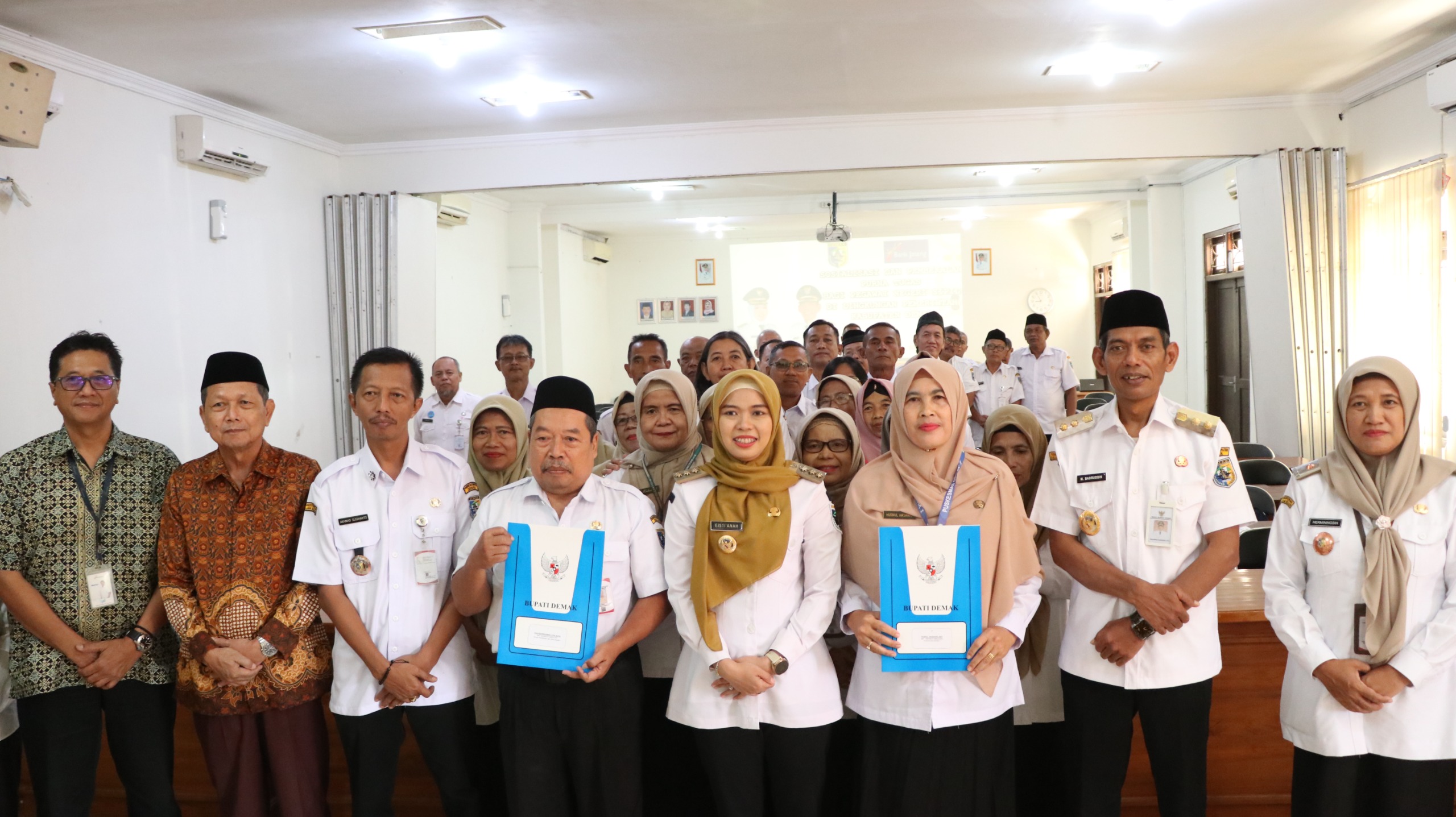 Acara yang dipimpin langsung oleh Bupati Demak, dr. Hj. Eisti’anah, S.E., serta dihadiri Wakil Bupati, Sekretaris Daerah, Kepala BKPSDM, Pimpinan Bank Jateng Cabang Demak, dan Ketua PWRI Kabupaten Demak.