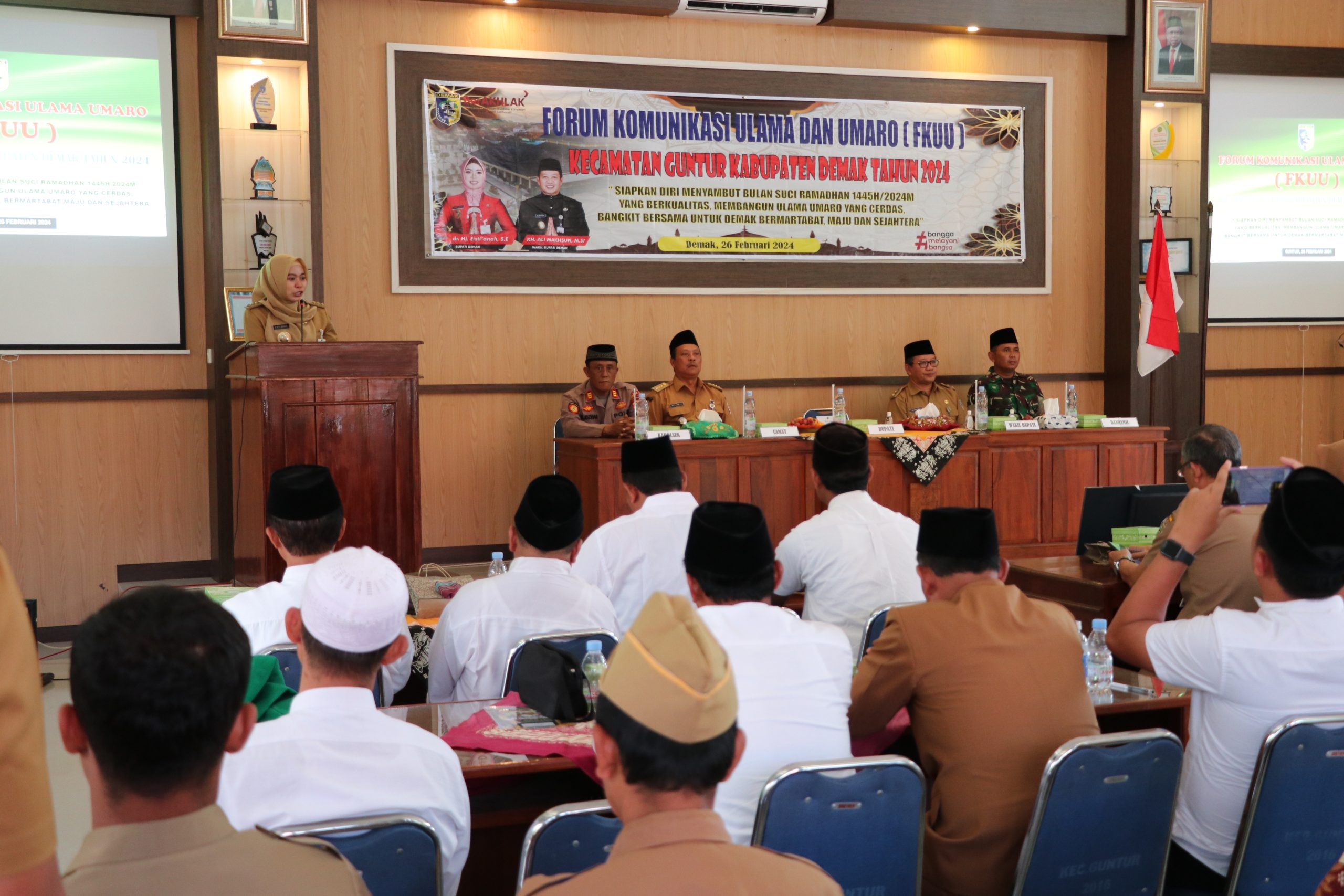 Bupati Demak Eisti’anah Hadiri Forum Komunikasi Ulama dan Umaro di Kecamatan Guntur, Senin (26/02/2024). Dalam sambutannya, Bupati Eisti mengatakan bahwa musibah banjir mengajarkan betapa pentingnya mitigasi dan kewaspadaan dini dalam menghadapi bencana.