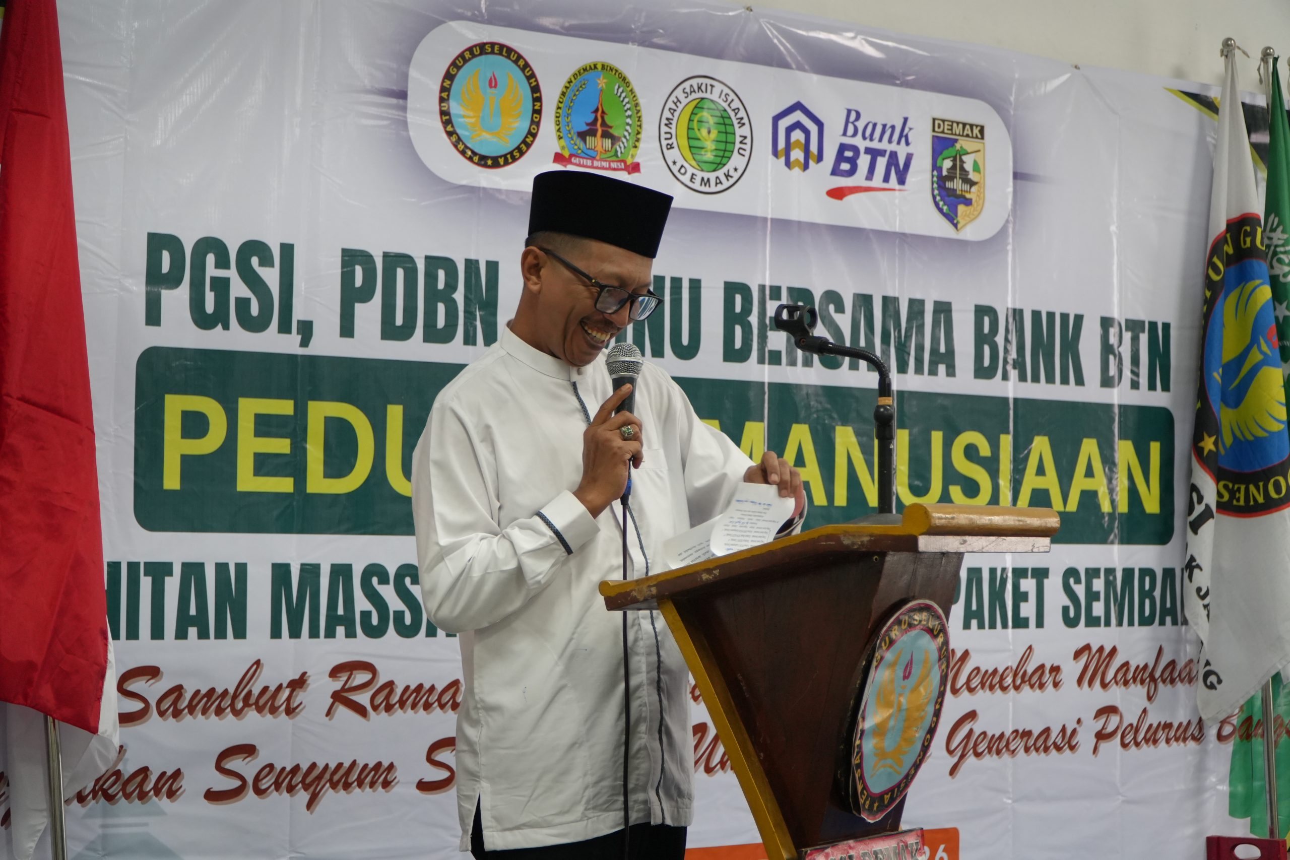Menyambut datangnya bulan suci Ramadhan, RSI NU Demak bersama Pemerintah Kabupaten Demak dan mitra kerja menggelar kegiatan “Launching Peduli Kemanusiaan: Sambut Ramadhan Dengan Berbagi, Menebar Manfaat, Wujudkan Senyum Sehat bagi Umat dan Generasi Penerus Bangsa”. Acara berlangsung pada Minggu (1/2/26) di Aula Lantai 2 RSI NU Demak, dipimpin oleh Sekretaris Daerah Kabupaten Demak, Akhmad Sugiharto, S.T., M.T. dihadiri oleh Direktur RSI NU Demak H. Abdul Azis, Kepala Bank BTN KCP Demak, Sekjen BTN, perwakilan Polres Demak, serta masyarakat penerima bantuan.
