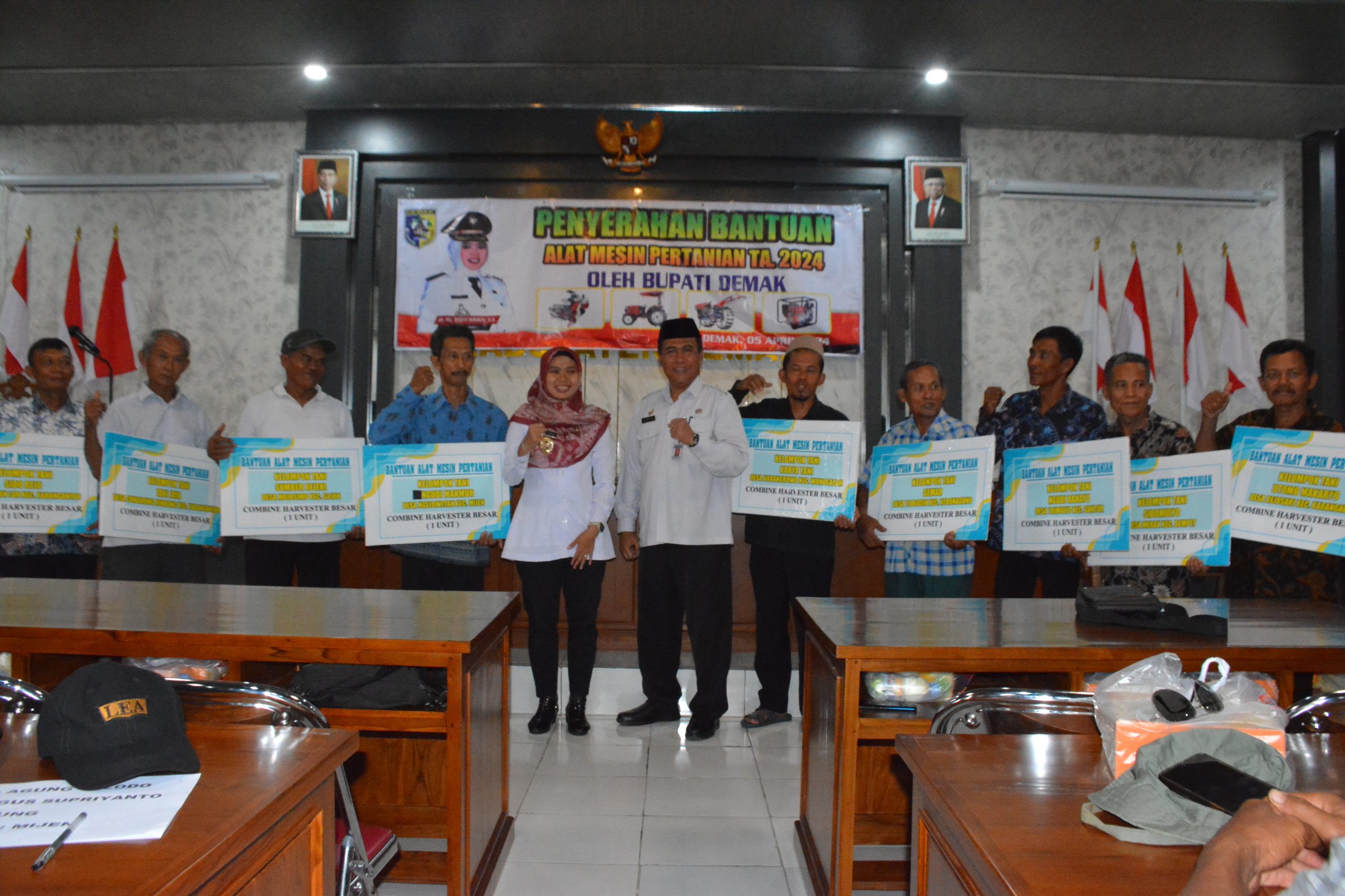 Dalam upaya pemulihan pasca-banjir yang melanda beberapa wilayah di Demak, Bupati Eisti’anah menyerahkan bantuan alat mesin pertanian kepada petani yang terkena dampak. Penyerahan tersebut dilakukan di Aula Dinas Pertanian Demak, Jumat (05/04/2024) Hal tersebut menandai langkah konkret pemerintah daerah dalam mendukung sektor pertanian.