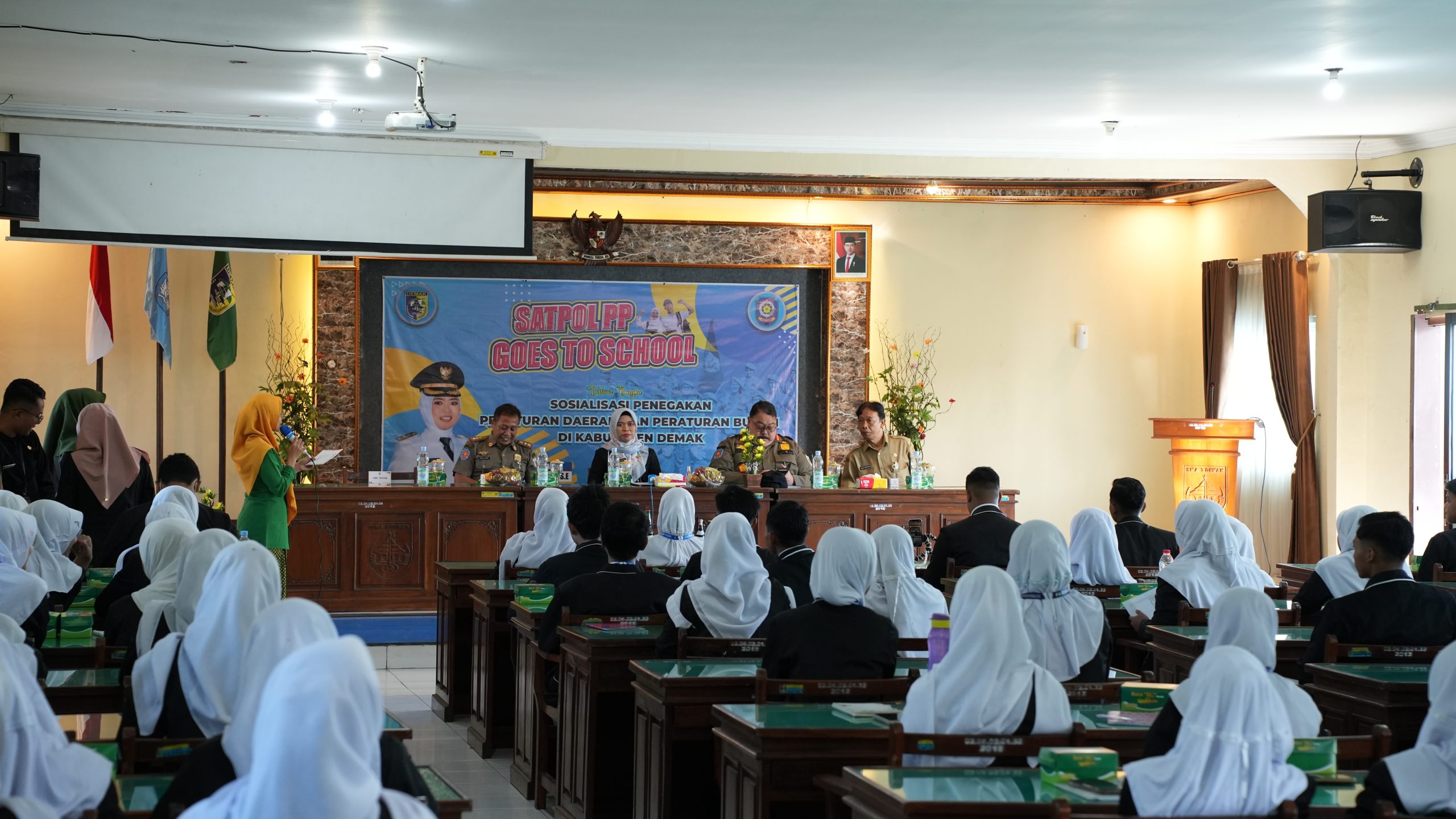 Pemerintah Kabupaten Demak terus mendorong upaya penanaman kesadaran hukum kepada generasi muda. Melalui kegiatan sosialisasi penegakan peraturan daerah dan peraturan kepala daerah yang digelar di SMAN 3 Demak pada Senin (28/4/2025), Bupati Demak dr. Hj. Esti’anah, S.E., hadir langsung memberikan arahan kepada para siswa.