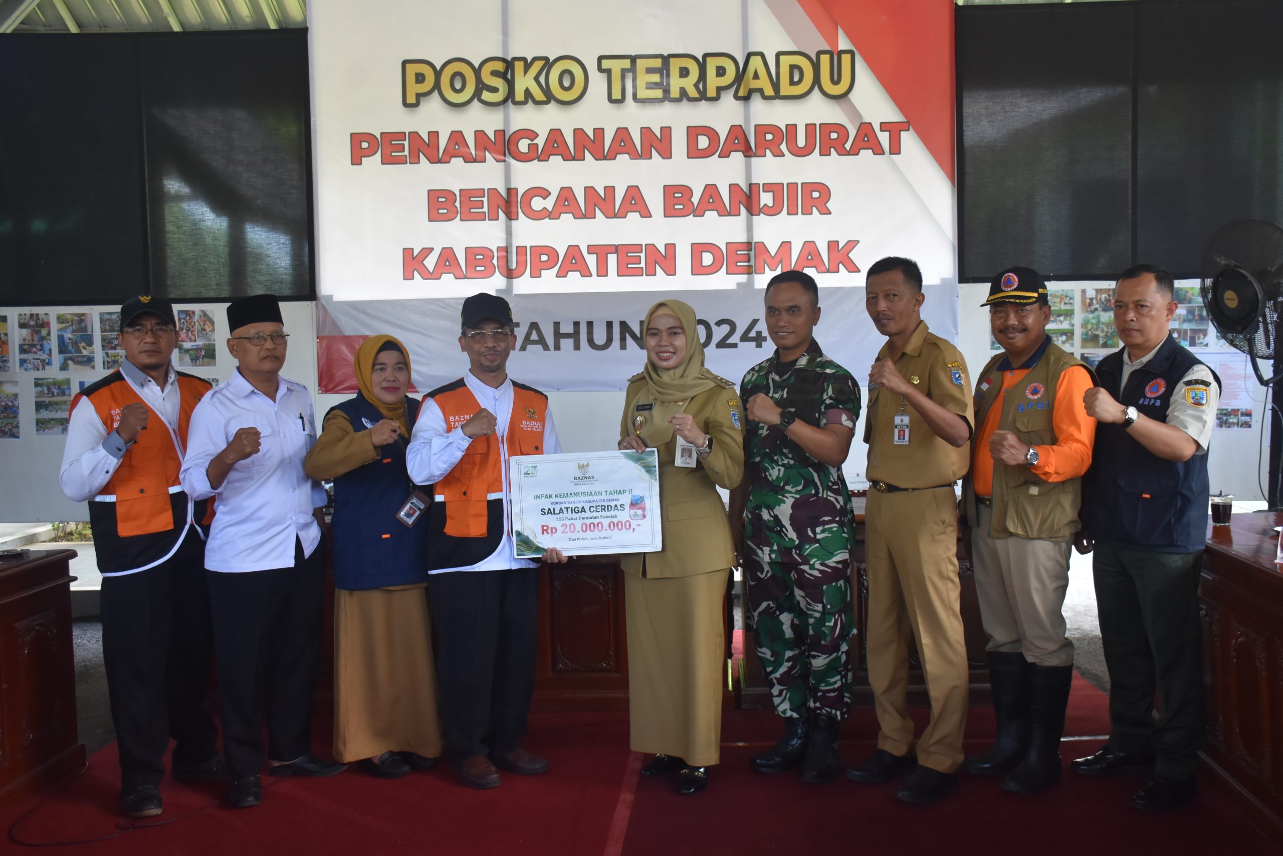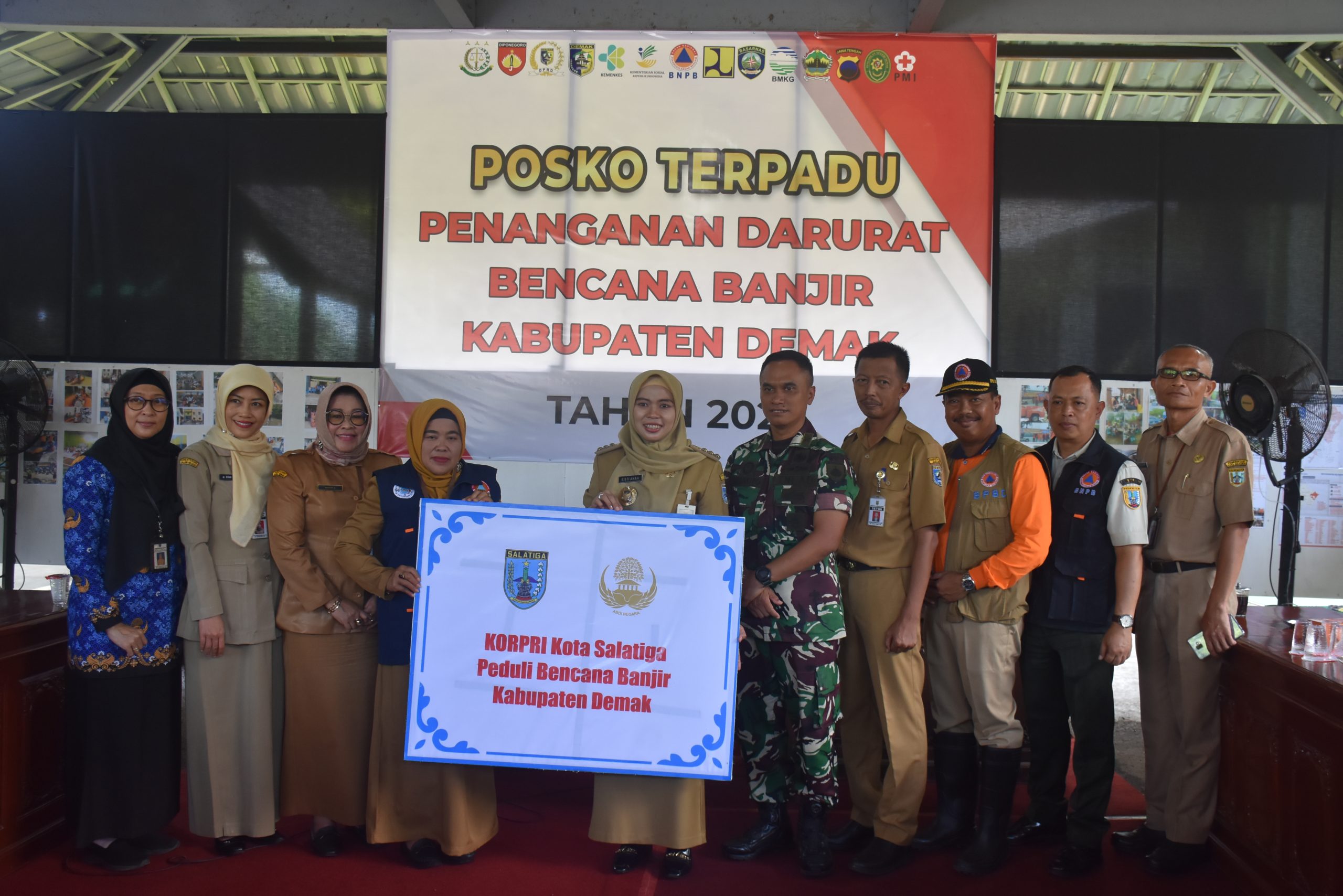 Turut hadir Dandim 0716/Demak selaku komandan posko terpadu bencana banjir kab. Demak Letkol Kav. Maryoto, Sekda Demak Akhmad Sugiharto, Kepada BPBD Demak Agus LP, Perwakilan BNPB, serta jajaran dari Pemkot Salatiga.